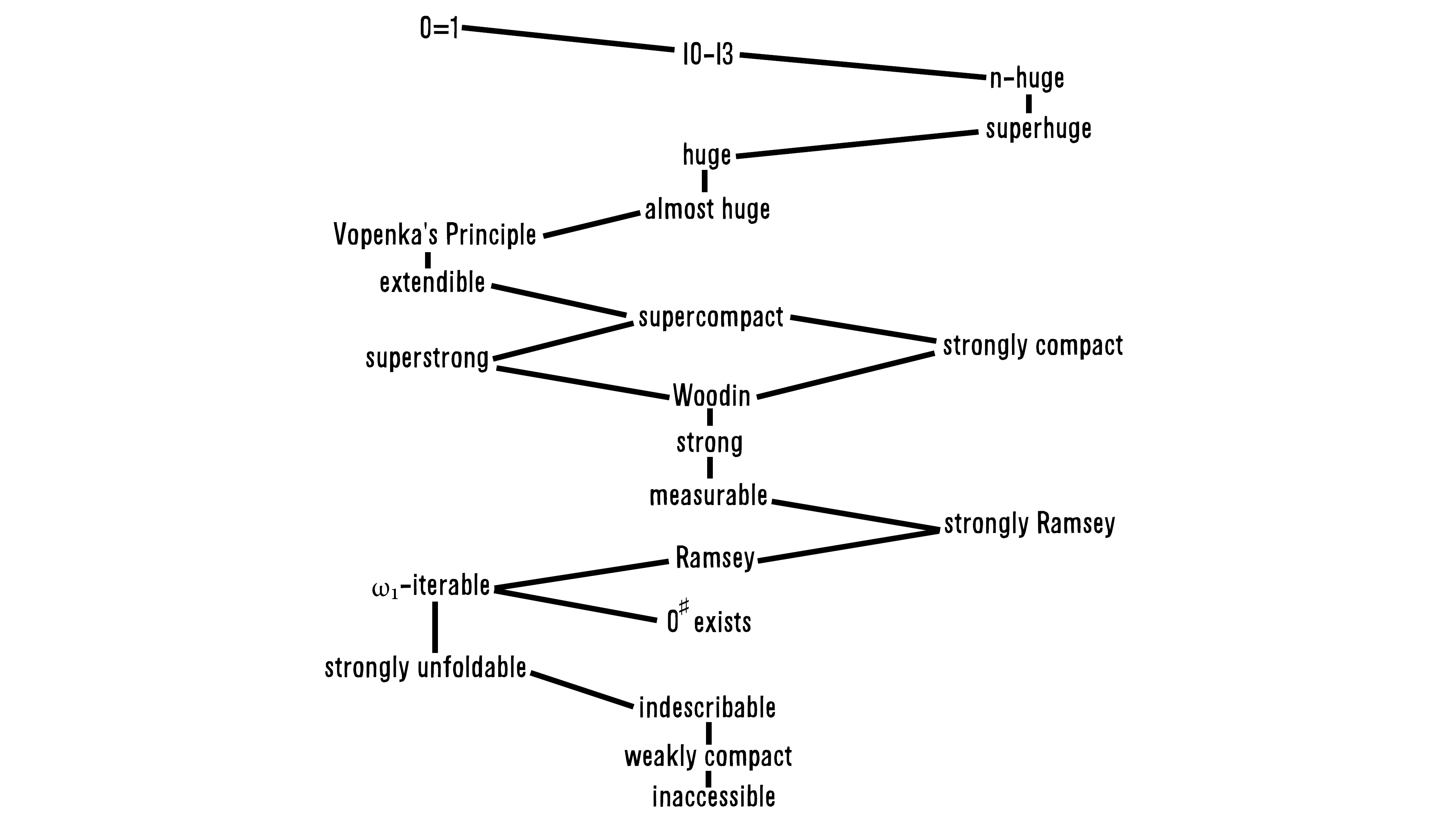 Using cardinals to order infinities. A similar table is at cardinal hierarchy.
